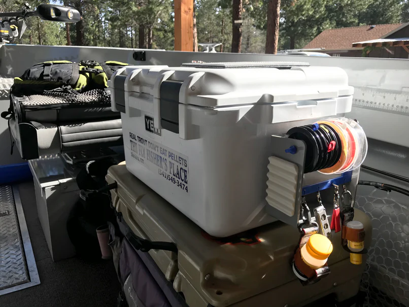 We designed the Rigging Station to make the experience of fishing out of a pontoon, drift boat, kayak, raft, float tube, truck or skiff easier and therefore more enjoyable. Designed for convenience, it keeps your fishing tackle, pliers, tippet spools, and flies secure and within easy reach, making rigging faster and more efficient.